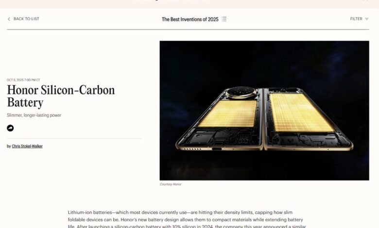 The second award recognizes HONOR’s innovation in battery technology, which surpasses the density limitations of traditional lithium-ion batteries, enabling thinner foldable devices with longer battery life.