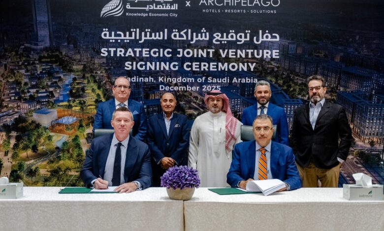Knowledge Economic City (KEC), the pioneering publicly listed master developer operating under the regulation of the Economic Cities and Special Zones Authority and contributing to Madinah’s urban and economic transformation, has announced the signing of a strategic joint venture with Archipelago International with equal shares. The new partnership aims to establish a specialized hospitality management company, develop a Saudi hotel brand, and deliver the first hotel project in Madinah as part of KEC’s broader expansion in the Kingdom’s hospitality sector.