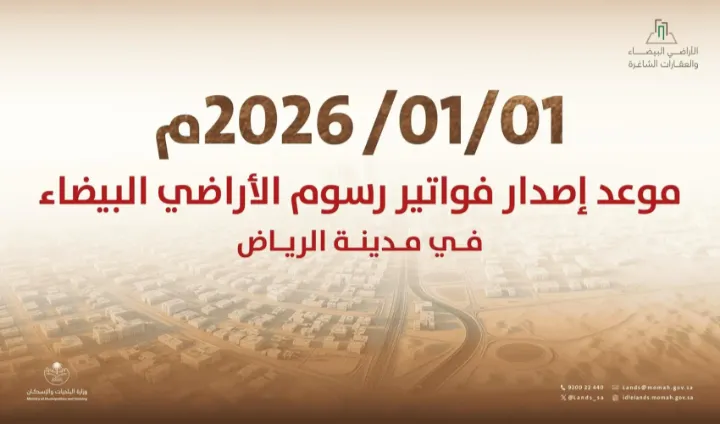 “البلديات والإسكان”: بدء إصدار أول فوترة لرسوم الأراضي البيضاء في مدينة الرياض اعتبارًا من 1 يناير 2026