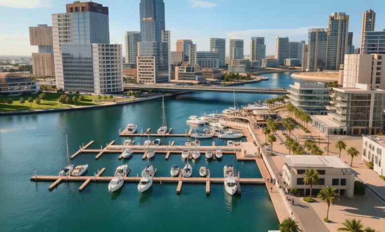 The masterplan is shaped by interconnected waterways and a newly created 12.5-kilometer waterfront, including a 5.5-kilometer waterfront promenade with navigable canals, bridges, marinas, and public parks. Water serves as the primary organizing element, shaping land use, mobility, views, and lifestyle across the destination.