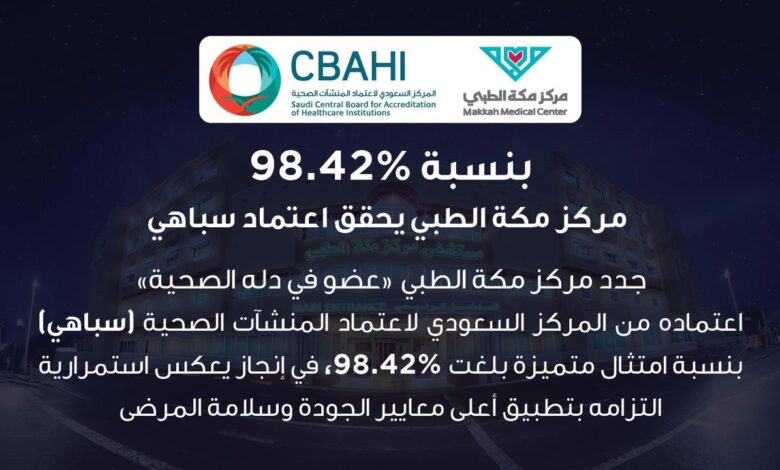 بنسبة 98.42 % مركز مكة الطبي يحقق اعتماد المركز السعودي لاعتماد المنشآت الصحية