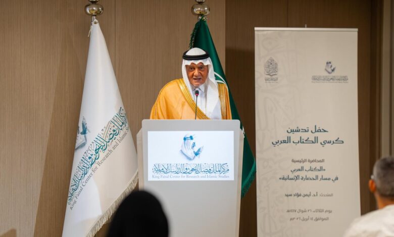 وأكد سموه أن تدشين كرسي الكتاب العربي بمركز الملك فيصل للبحوث والدراسات الإسلامية، يأتي بوصفه أول كرسي من نوعه في العالم العربي، ليجمع الجهود العلمية المتصلة بهذا المجال في إطارٍ مؤسسيٍّ جامع، ويحوِّل العناية بالكتاب العربي من أعمالٍ متفرقة إلى مسارٍ بحثيٍّ متكامل، يعزّز حضوره في خارطة المعرفة الإنسانية.