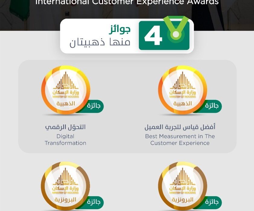 وزارة الإسكان تتصدّر جائزة “تجربة العملاء الدولية” بـ4 جوائز بينها ذهبيتان .. متقدمة على 45 دولة مشاركة
