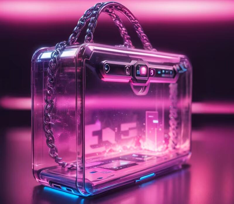1. Focusing on future fashion items – such as a remix of fashion items like chain bags + cell phones, highlighting the state of the phone screen