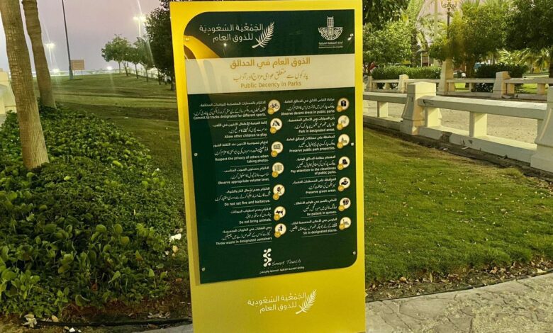 سعيًا لتحسين المشهد الحضري في المدن السعودية، والمحافظة على الحدائق والمتنزهات ومرافقها، والمسطحات الخضراء واستدامتها؛ نفذت الجمعية السعودية للذوق العام بالتعاون مع أمانة المنطقة الشرقية عددًا من اللوحات الإرشادية في كلٍ من كورنيش الدمام والخبر، وذلك ضمن برنامج “المشهد الحضري والحدائق”، الذي أطلقه ودشنه صاحب السمو الملكي الأمير سعود بن نايف بن عبدالعزيز آل سعود – أمير المنطقة الشرقية – الرئيس الفخري للجمعية.